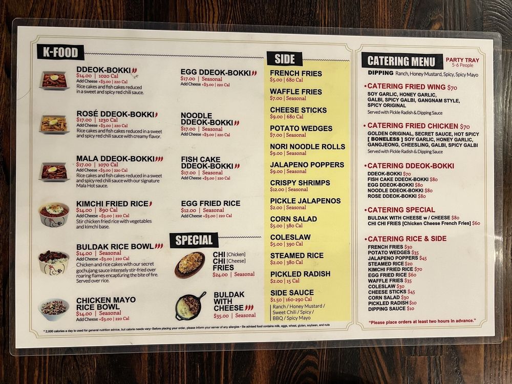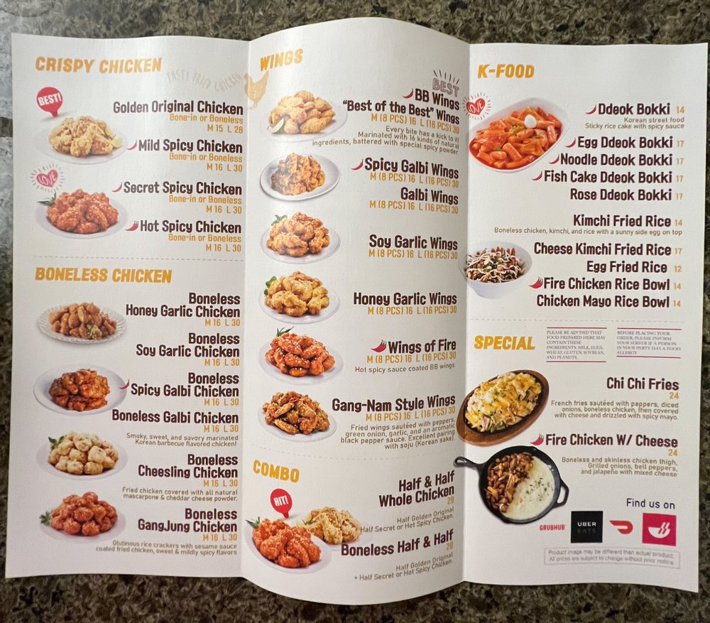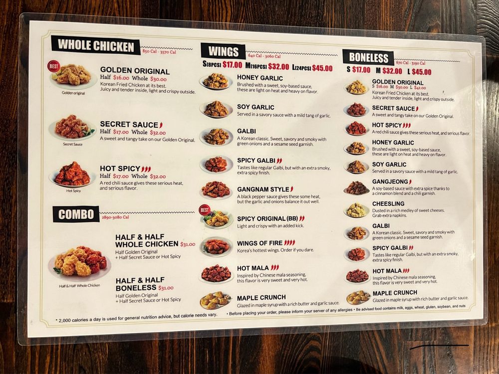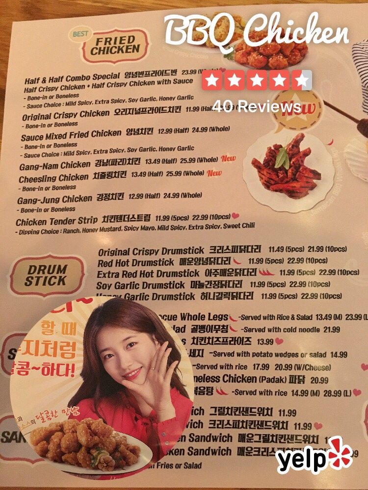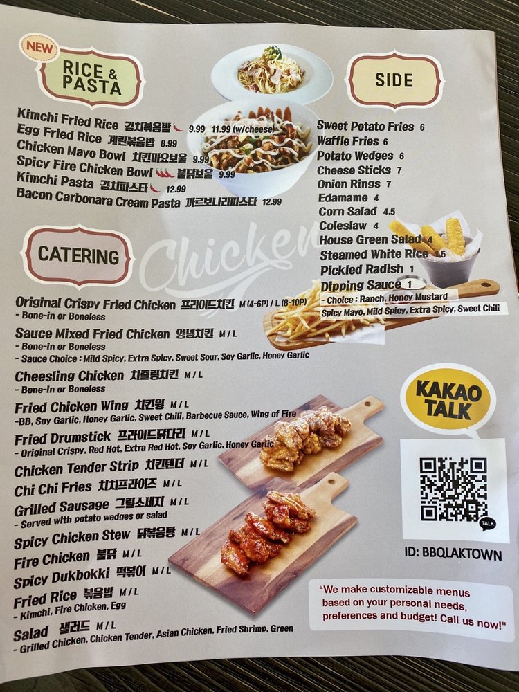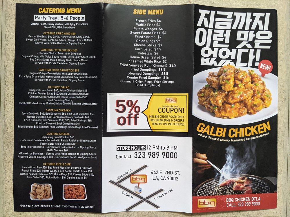 Introducing the menu at bb.q Chicken - LA Little Tokyo, a casual and trendy Korean chicken shop known for its delicious chicken wings. Located in Los Angeles, this restaurant offers delivery, takeout, and reservations, making it convenient for all diners. The menu boasts many vegetarian options and provides a wide range of utilities, from wheelchair accessibility to happy hour specials. Customers praise the perfectly crisp chicken, flavorful sauces, and attentive service. The honey soy garlic wings are a standout, with a generous amount of glaze and fresh garlic. While prices may be on the higher end, the quality and taste make it a worthwhile treat. Whether you're a chicken wing connoisseur or new to Korean fried chicken, bb.q Chicken - LA Little Tokyo promises a memorable dining experience.