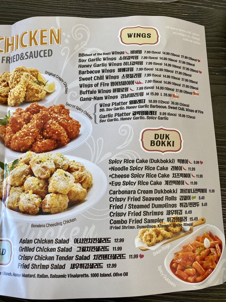 Korean Fried Chicken at its best. Juicy and tender inside, light and crispy outside. Radishes not included, must be purchased separately.